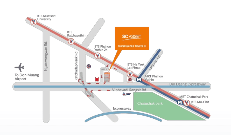 โดยสามารถเข้าถึงสถานีรถไฟฟ้าใต้ดิน ( MRT สถานีพหลโยธิน) และสถานีรถไฟฟ้า (BTS สถานีพหลโยธิน 24) ได้ง่ายดาย พร้อมบริการรถชัตเทิลมูฟมี (Shuttle Muvmi Service)